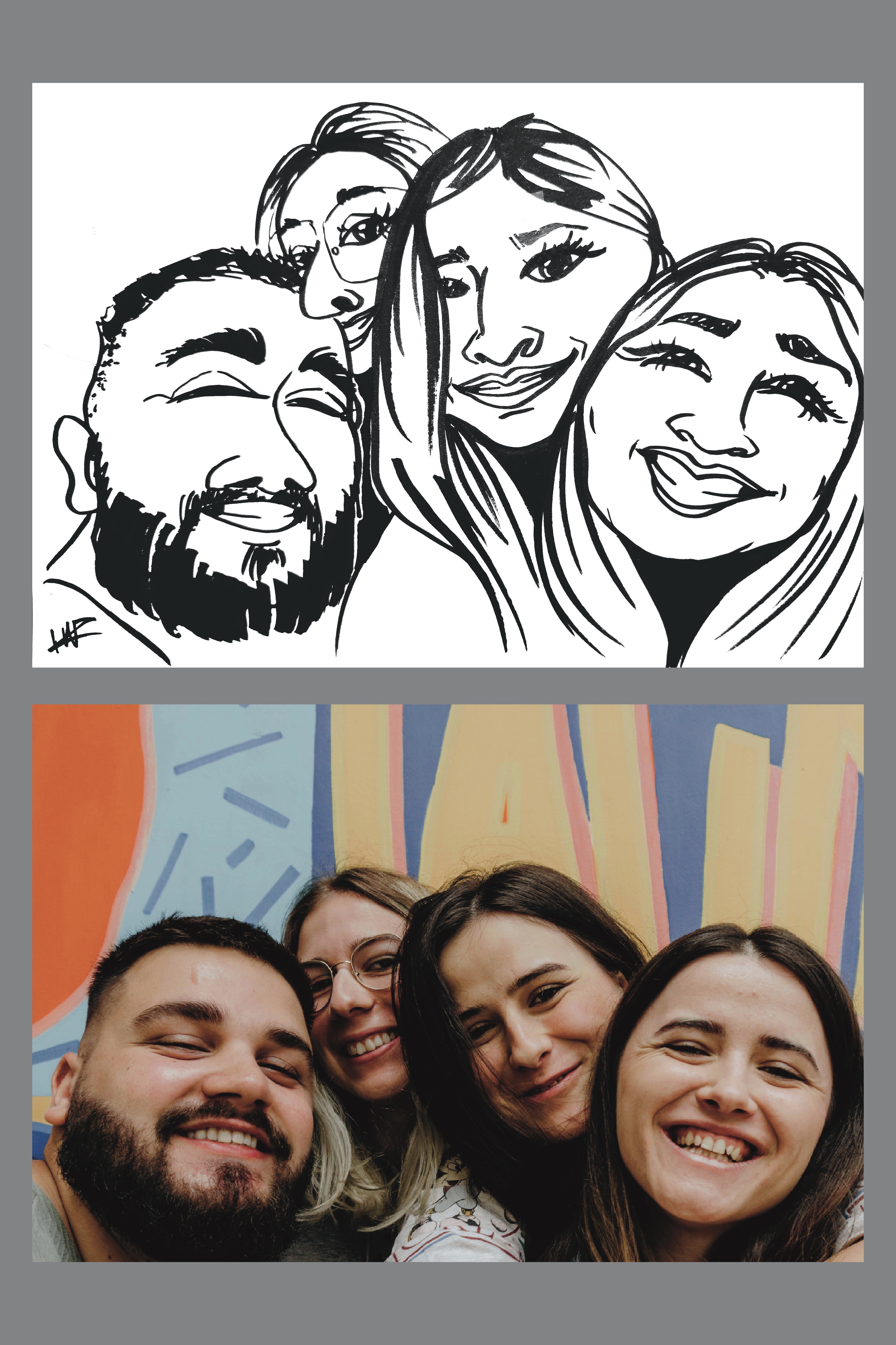 Caricatures are an engaging and amusing way to capture the essence of you or your loved one in a beautiful, exaggerated drawing. Our portraits are a unique fusion of Western and Japanese styles, lovingly handcrafted to express the joy of every subject, and perfect to hang on the fridge or living room wall.